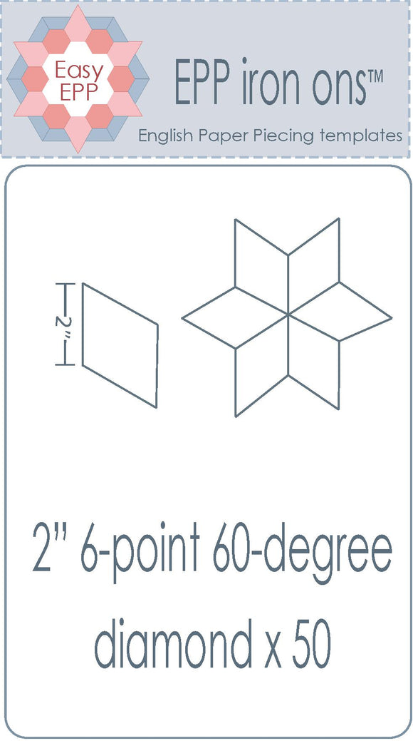Hugs'n Kisses~ EPP Iron-Ons ~2 inch 60-degree 6-point diamonds x 50 pack