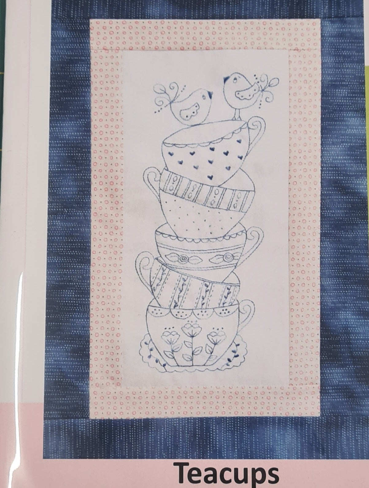 This stacked teacups pattern from Fig 'n' Berry Creations is a charming addition to any kitchen or dining room.
