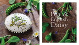 Pea & English Daisy Pinwheel by Susan O'ConnorEmbroidered pinwheel with pea pods, pea flowers and white daisies