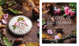 Acorn & Gillyflower Pinwheel by Susan O'ConnorEmbroidered pinwheel with gleaming acorns and pink and white gillyflowers