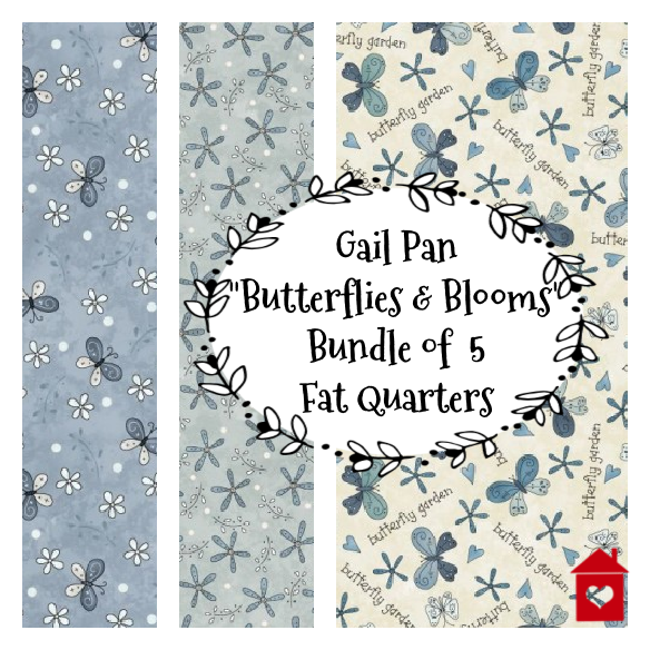 This bundle includes 5 fat quarters from the "Butterflies & Blooms" range.