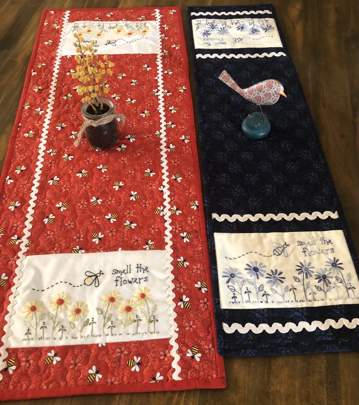 Gail Pan~Smell the Flowers~ pattern & Kit for Blue table runner