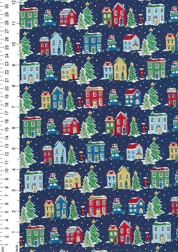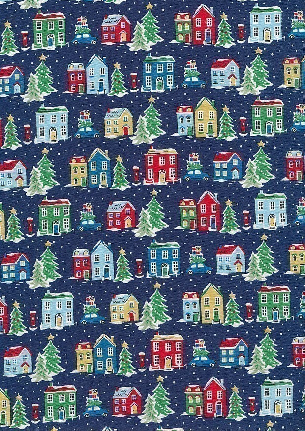 Liberty Fabrics - Deck The Halls- Village~ Navy