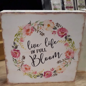 Live Life in Full Bloom ~ block sign