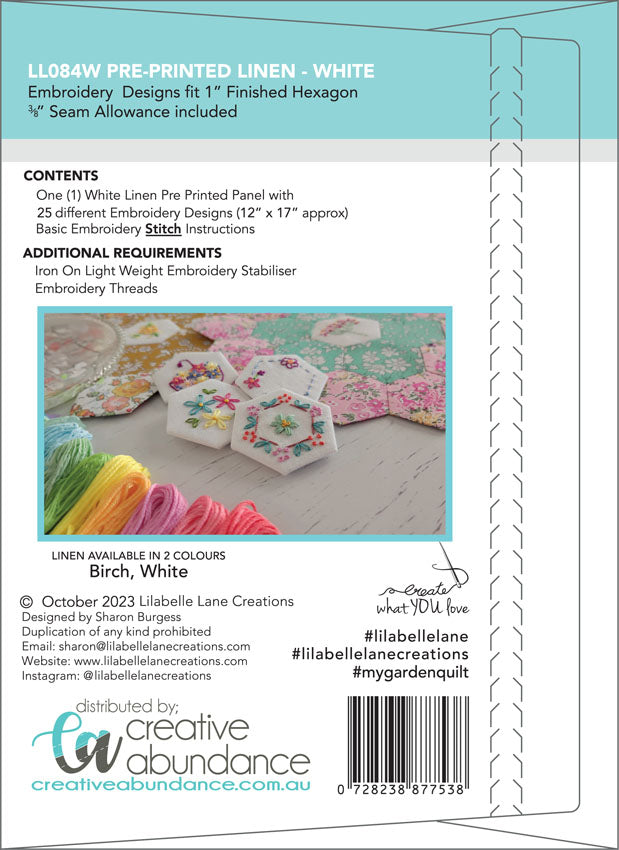 Lilabelle Lane Creations "My Garden" Embroideries Vol. 1 - Pre printed Linen