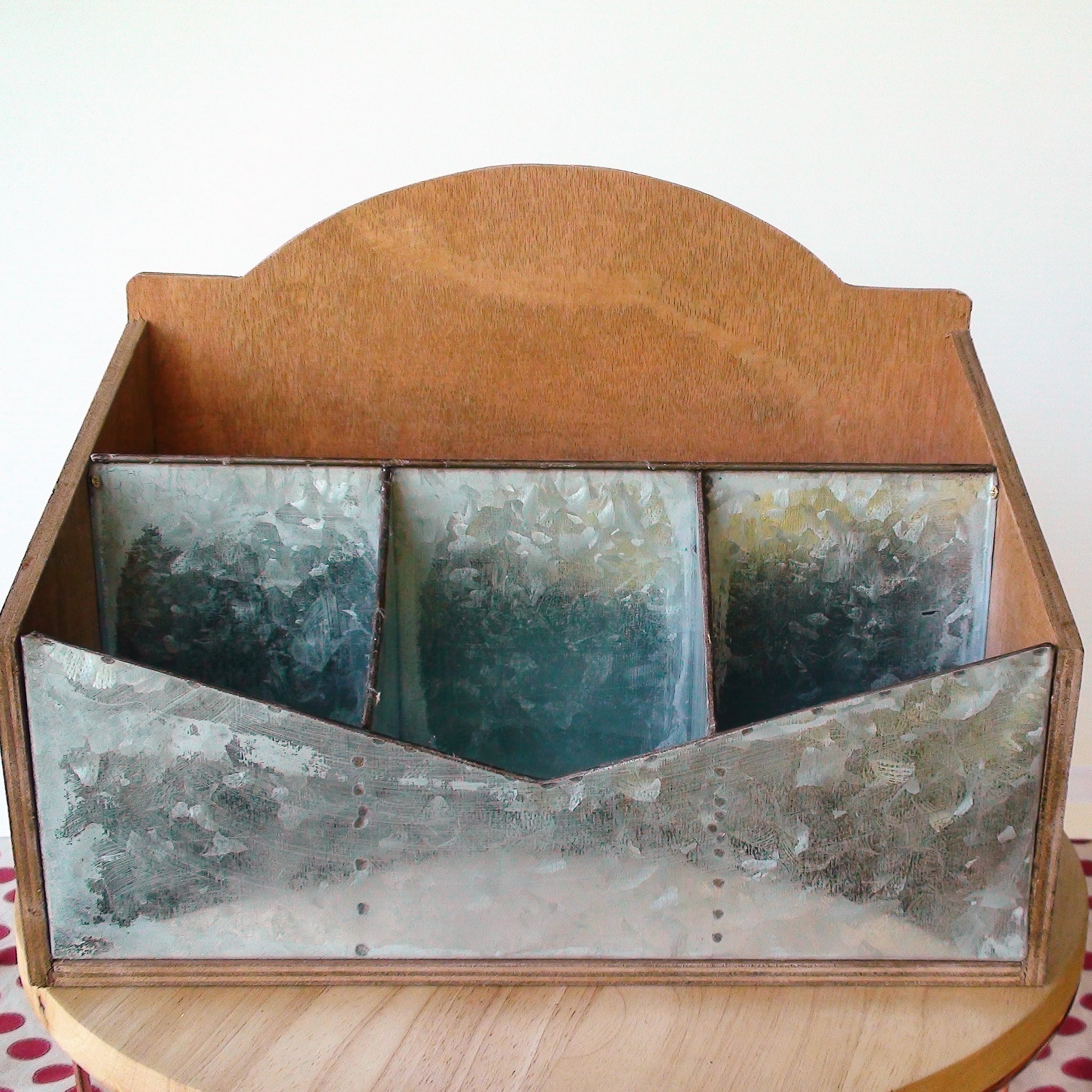 Galvanized metal & wood desktop organiser, ~perfect for letters & stationary
