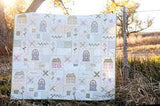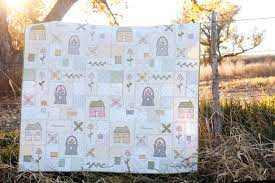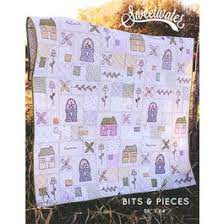 From flower baskets to cozy cottages, the "Bits & Pieces Quilt" Pattern features a little bit of everything that makes you feel at home. Piece this project with a layer cake and hand stitch the designs. a great summertime project.